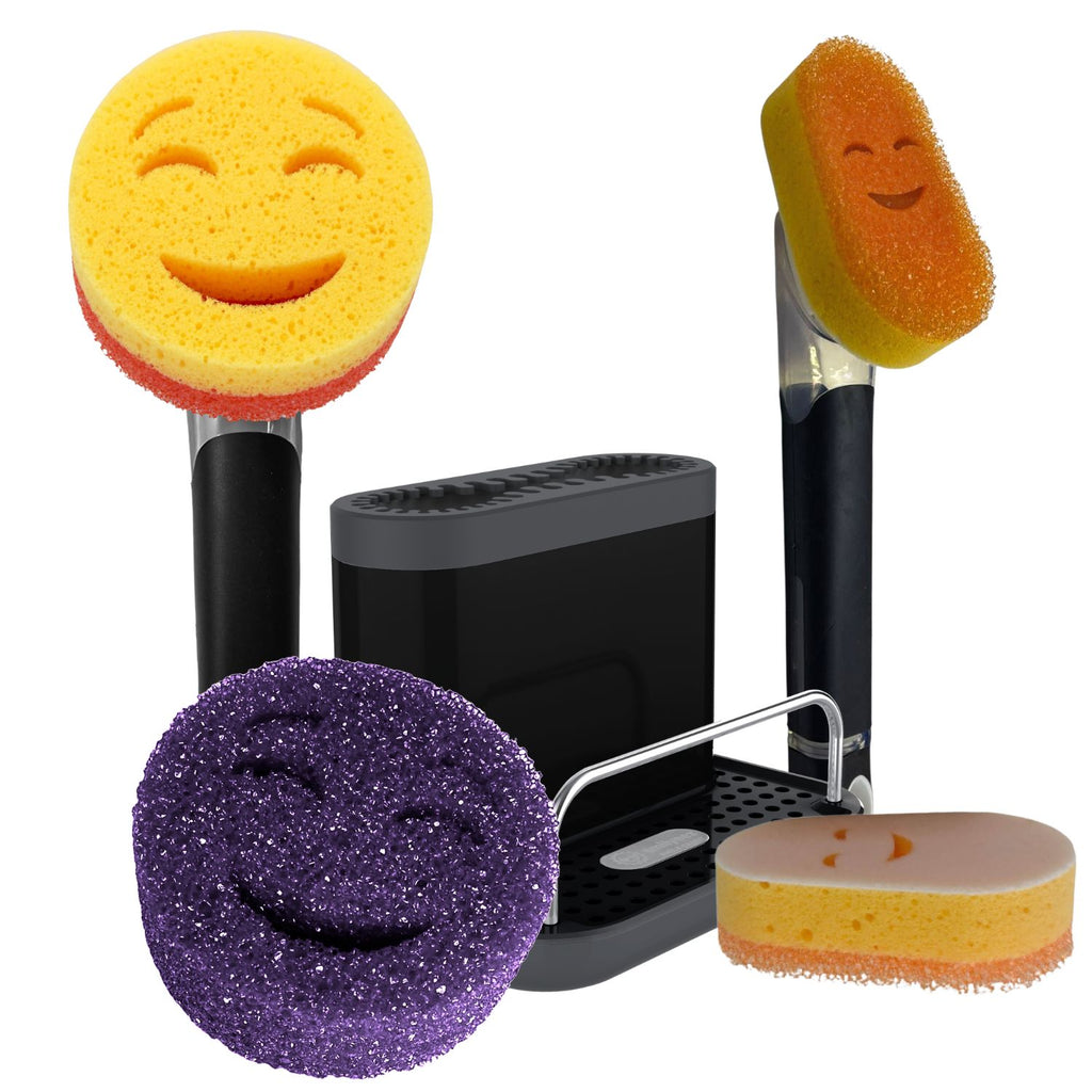 MOJI: Durable, easy-to-use scrub sponges that make every household chore a little more fun! These non-scratch sponges are odor-free with a smile.